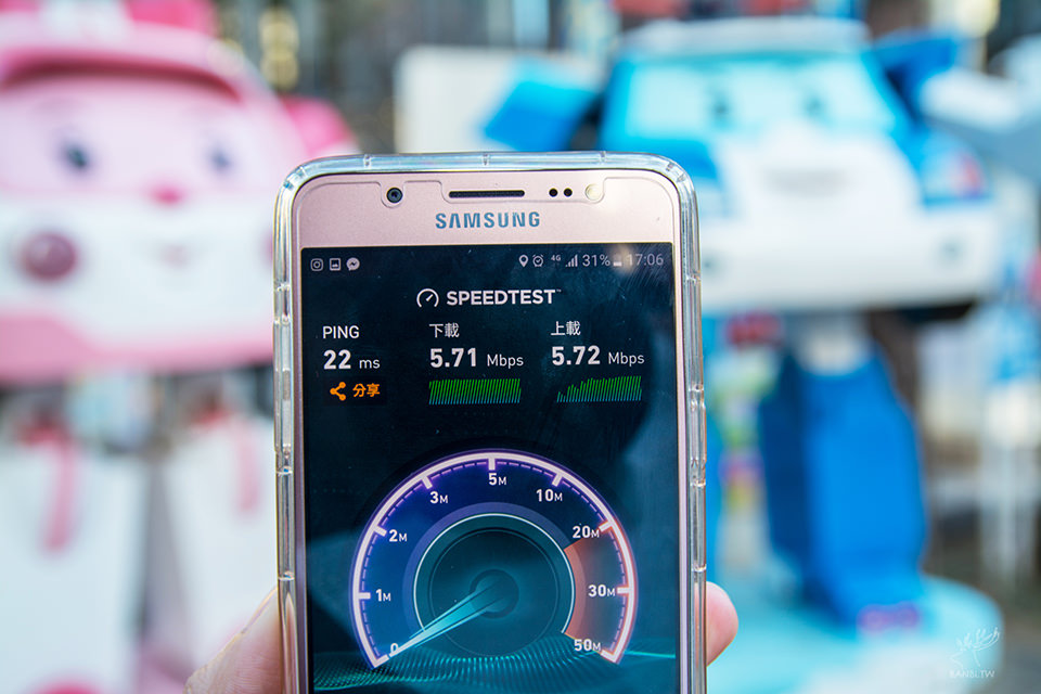 我在首爾市區無論東大門、弘大、梨花、黎泰院等使用起來都很順暢,照片是我在首爾時間週五下午17:06於明洞的測速資料。