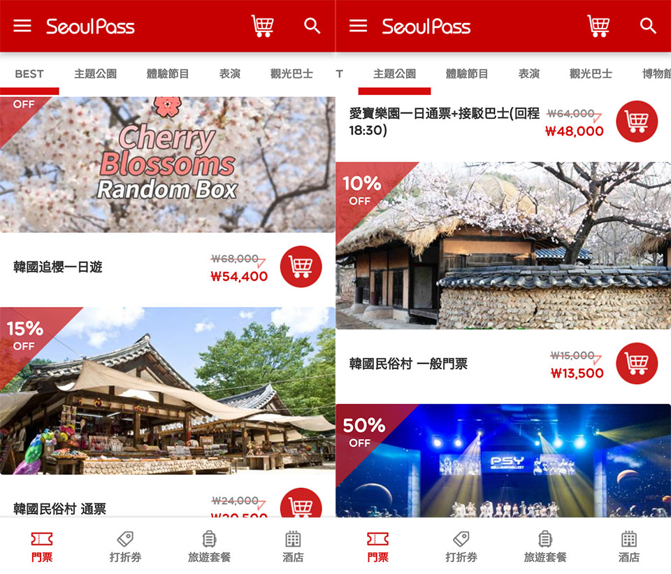 接下來韓國的櫻花季也快到了,SEOUL PASS上也可以找到韓國追櫻一日遊、鬼怪拍攝地:江陵海洋一日遊、仁川機場到首爾市區飯店接送、採草莓、韓國民俗村門票、滑雪場等,有好多旅遊行程或是優惠券,讓韓國自由行旅遊都很方便,大家可以下載SEOUL PASS APP查看更多旅遊行程!