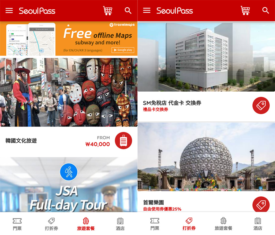 SEOUL PASS也有旅遊套餐、免稅店打折券優惠。