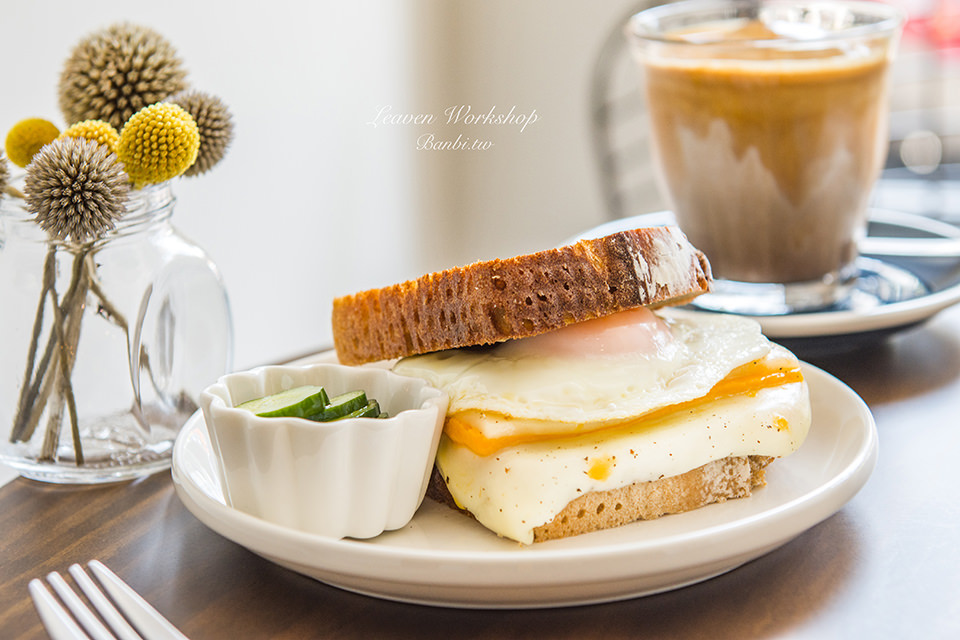 由於早餐沒吃,打算直接在Leaven workshop 璞家工作室將早餐、午餐一起享用,見了目前有的比較像是鹹食型態的餐點為烤三起司三明治,點了一份另再加顆蛋,想像那畫面應該很可愛吧。(除了加蛋,也可以加點火腿或是香腸,若吃得完,全加也是可以)