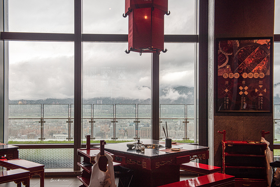 由於在45樓,因此好天氣時能見到台北信義區高空,白天以不同角度見城市風光,晚上則欣賞浪漫台北夜景,在台北市若要找尋美景餐廳,麻辣45就很合適。不過我們來時正好雨下很大,到了餐畢時厚雲層才稍微散去了些,影響了能見度,若是沒有下雨則可走到外面陽台拍照。