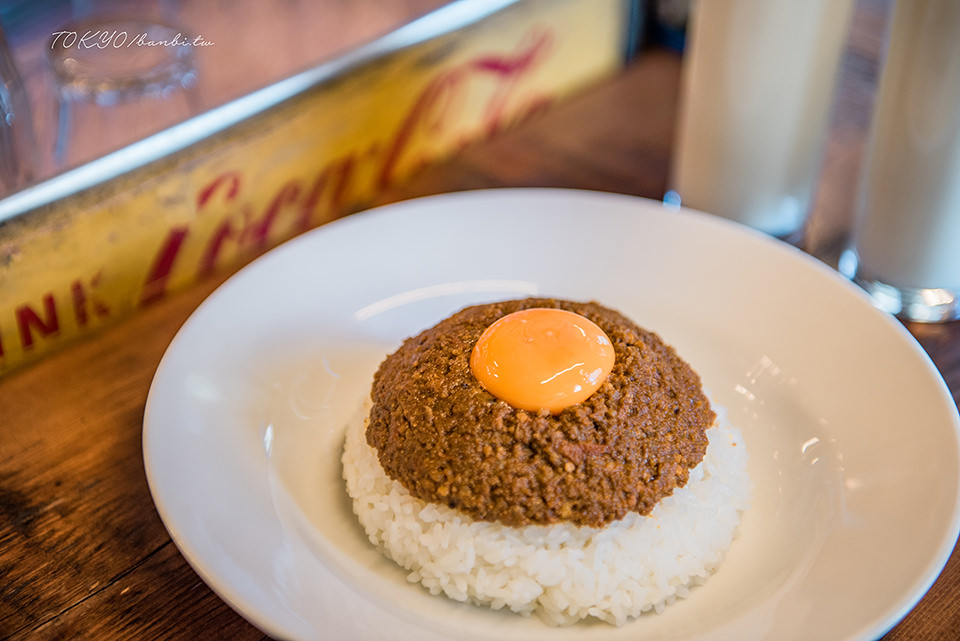 在東京澀谷原宿一帶非常熱門的美食–MOKUBAZA,是咖哩飯店結合小酒館型態。細心將牛豬肉混合多種香料炒製而成的自家製咖哩飯,搭配多種組合。其中最人氣的料理是將肉末咖哩淋上滿滿雪白色的莫札瑞拉起士,再放上顆蛋黃,樣子像極了巨大的荷包蛋,賣相極好且好吃。