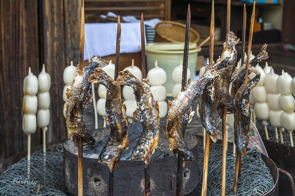 一攤攤的烤糰子與烤魚,街上都是滿滿的烤魚香呀!
