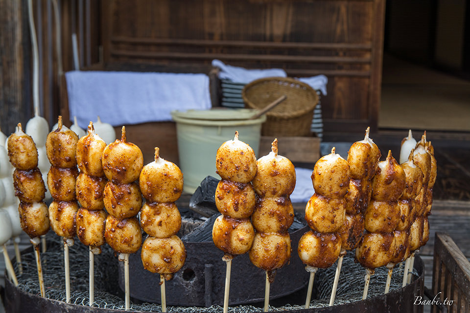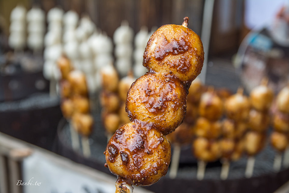 大家都像這樣的坐在路旁吃著烤糰子或是烤魚,簡單但是很滿足。