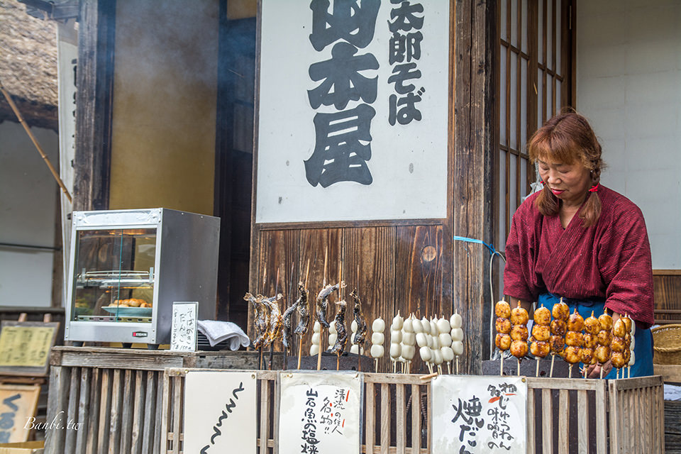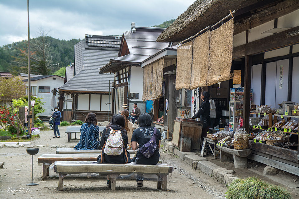 日本三大茅草聚落村大內宿-美麗的福島茅草屋 三澤屋大蔥蕎麥麵,比手大的麻糬與烤魚烤糰子
