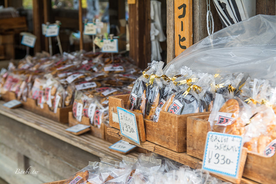 在大內宿也有不少米果煎餅,瞧這間還有超級大的煎餅做成像招牌一樣掛在牆上!