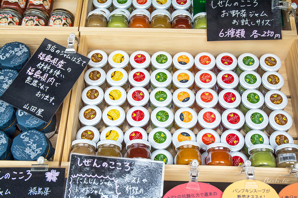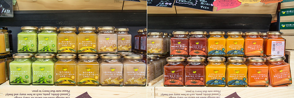 其中一間店引起了我的注意,是有趣的抹醬,有毛豆、南瓜、薑、番茄、柚子、胡蘿蔔!!!太酷了!