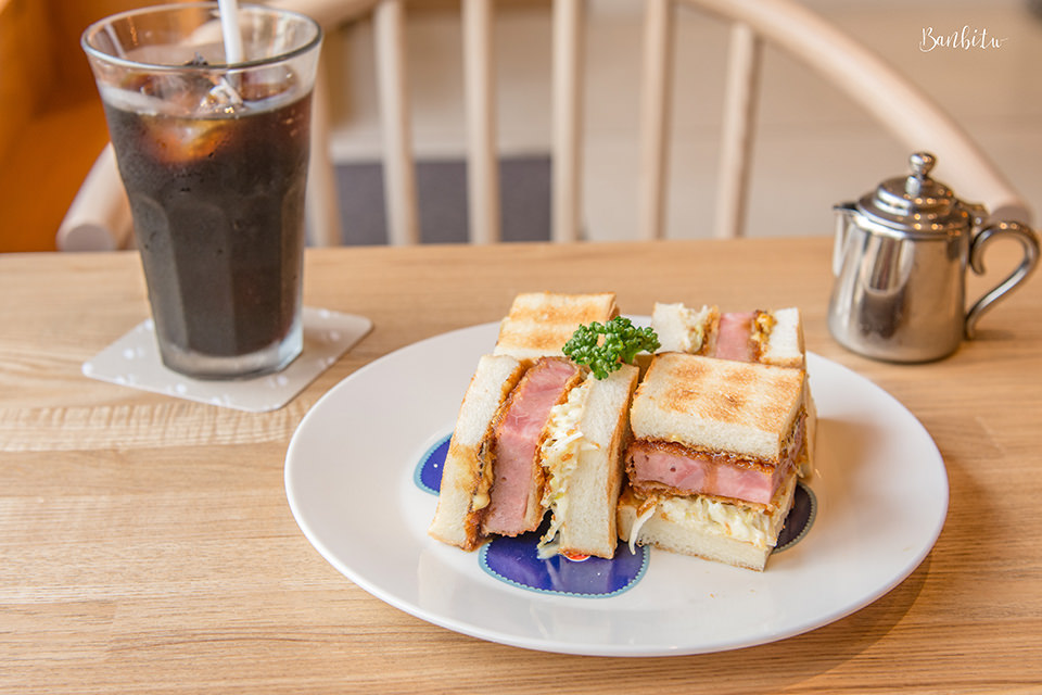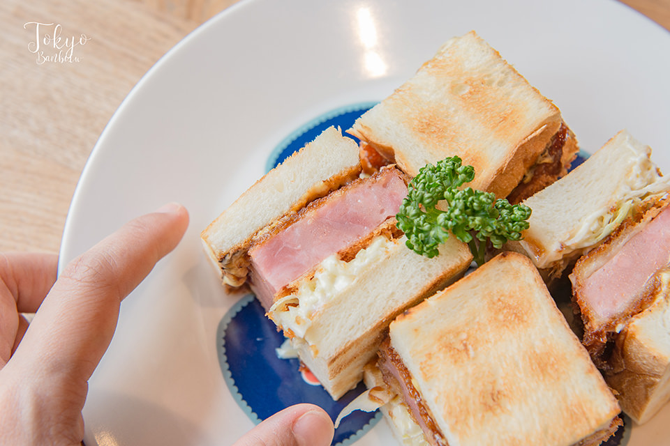 ハムカツサンド 650円(後方是我另外點的咖啡,為日本咖啡店常見的炭焙風味)