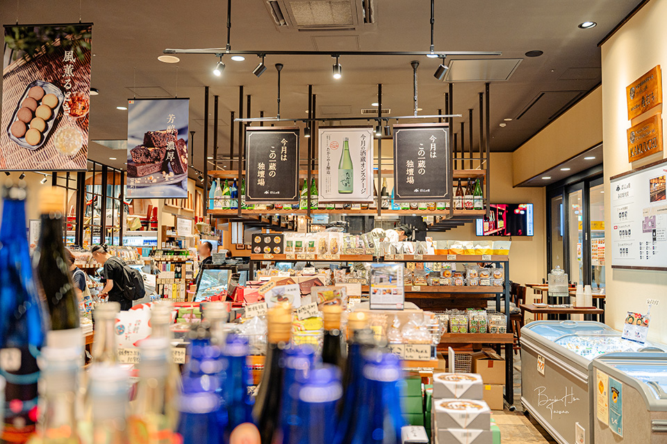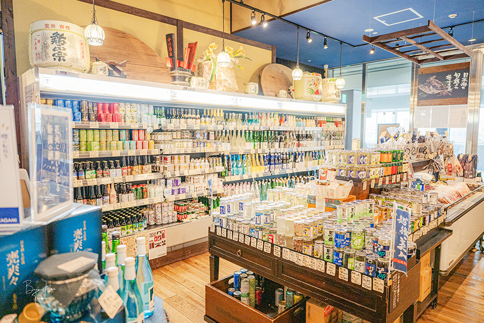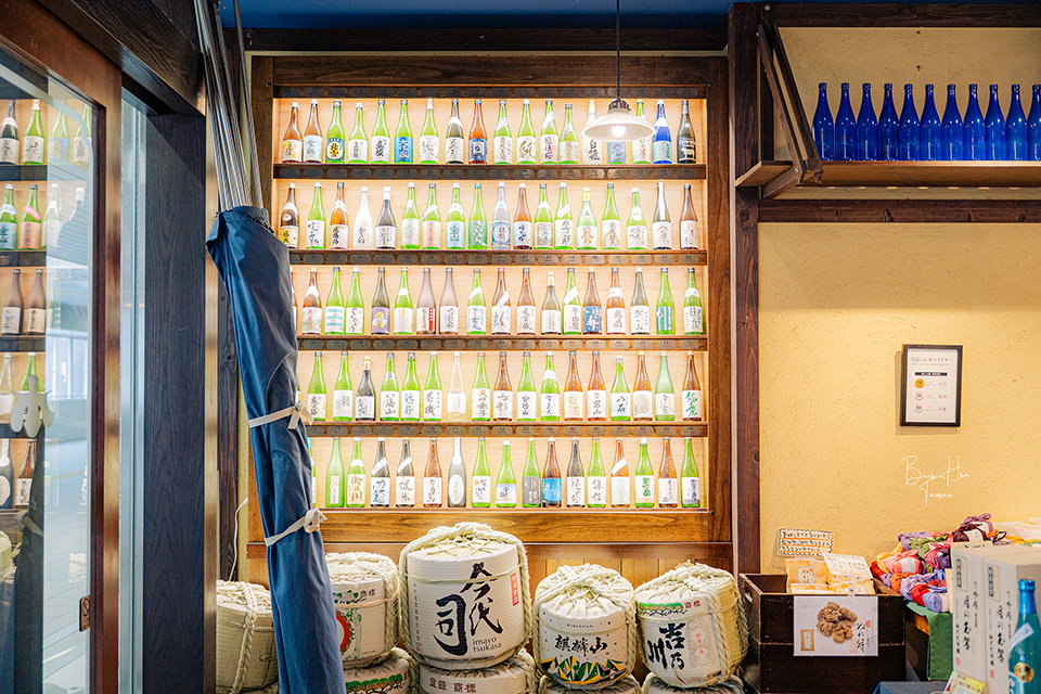 方才在自動販賣機喝到喜歡的清酒,可於商店區域挑選購買,也供應其他酒類選項,如各種啤酒。