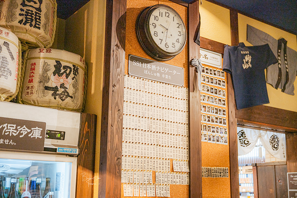 彷彿英雄榜一樣,將館內清酒販賣機全制霸或是日本酒ナビゲーター(SSI)畢業生名單/紀念照公布於牆上。