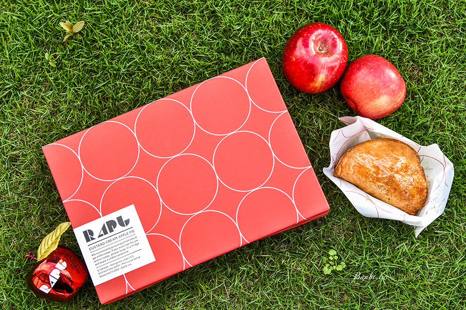 RAPL澎派令果蘋果派單個售價為$119元,四入一盒價格為$449元。
