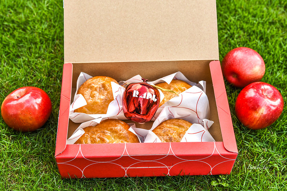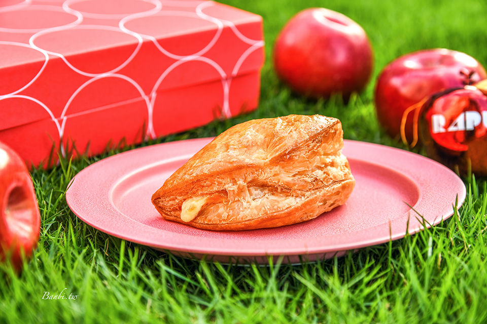 在台北信義新光三越A8新開幕的RAPL澎派令果,造型澎滿很可愛,是引進日本東京池袋、大阪人氣蘋果派品牌RINGO在海外的第一間分店。主打北海道製作144層派皮運送來台現烤,內餡則是使用日本青森不摘葉蘋果搭配日本國產蘋果切塊,並且在灌入小農鮮乳做的卡士達醬,而且無肉桂味。