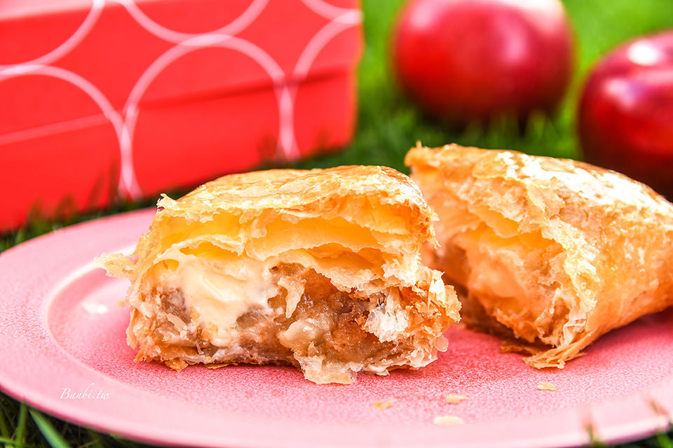 卡士達醬滑順,是甜甜奶香味。蘋果內餡能吃到大塊的蘋果果肉,口感上很不錯。