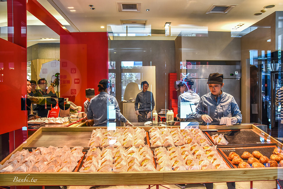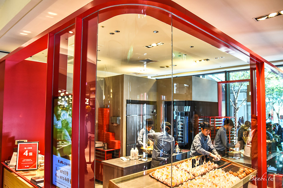 日本人氣千層蘋果派RAPL澎派令果台北信義新光三越A8店面,是透明化的製作方式,能在店裡看到製作卡士達醬、烘烤蘋果派、現灌卡士達醬的過程。