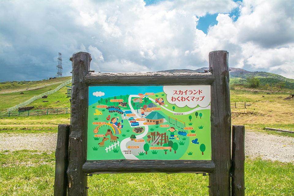在吾妻高原スカイランド有廁所、停車場、簡單的親子遊樂場、販售部等,我們將車子先停放在這的停車場(停車場是免費的),並且在此眺望遠方壯麗的山景。