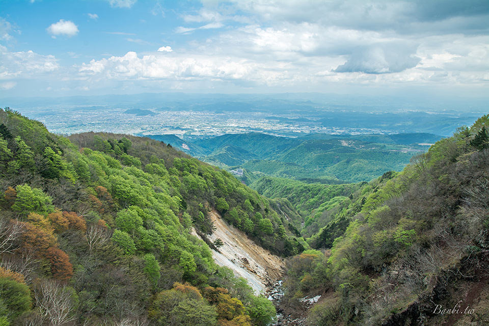 站在橋上可以眺望楓葉季節會滿滿楓紅的つばくろ谷(春天時綠色樹木也很美),也可眺望福島市區。