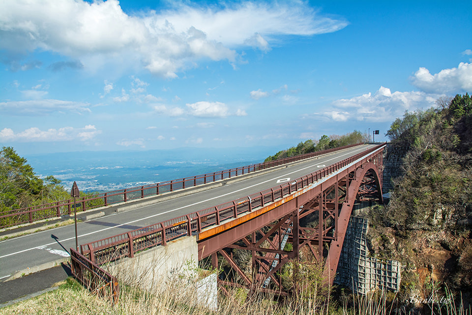 在吾妻高原歇息後,我們啟程開車前往有天空之路(Sky Line)之稱的不動沢橋(磐梯吾妻スカイライン),橋長170公尺。
