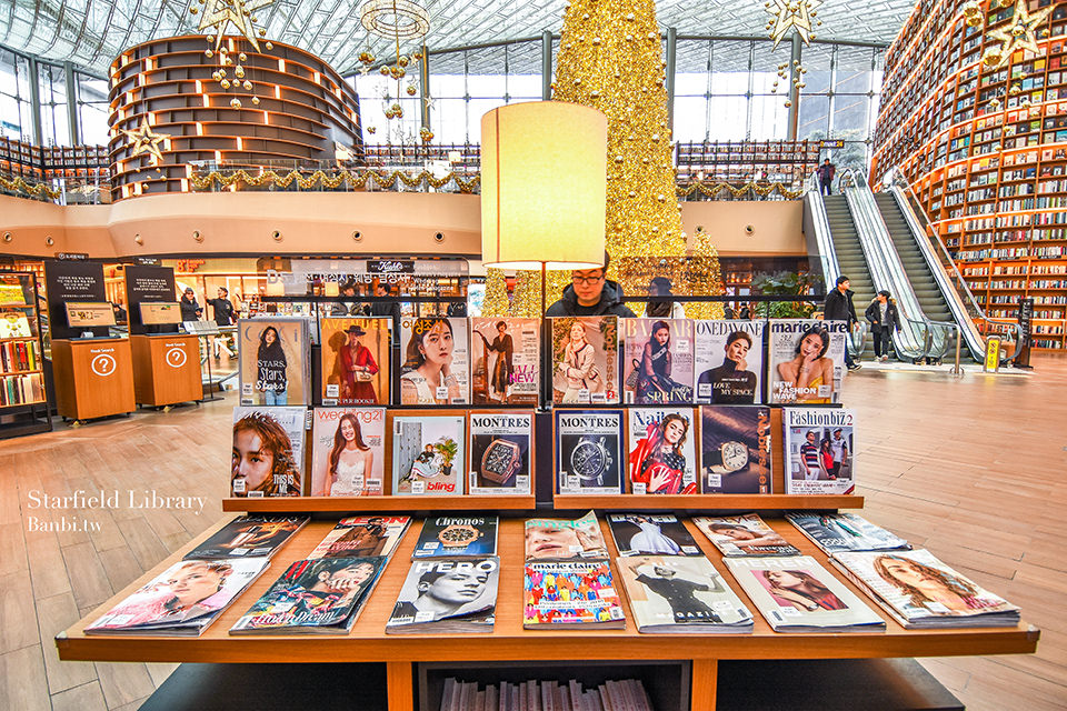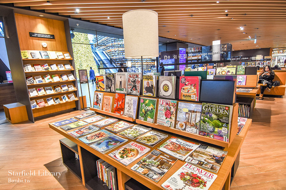 書籍不是只有韓文,也會有外文雜誌,擺放的位置、層架也很有質感,據STARFIELD LIBRARY提供的資料上說雜誌一共有約400多種。