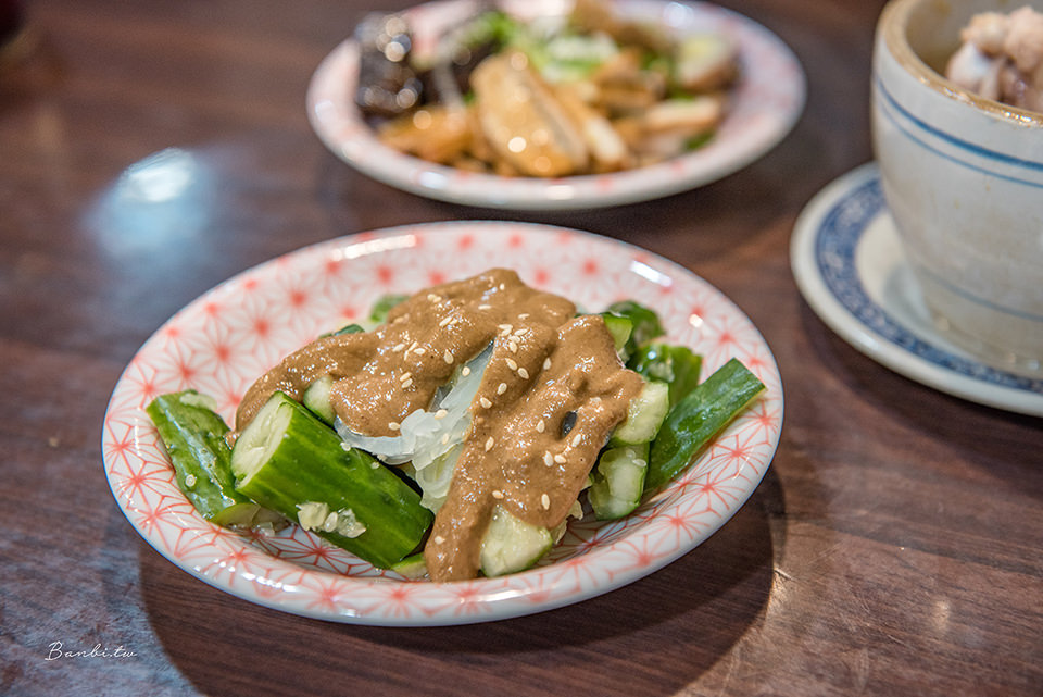 小黃瓜拍過未醃,單吃較為無感,需沾取厚麻醬才能帶味。不過那麻醬細沙感,帶芝麻與花生味香氣,比起一般常見的麻醬算是有特色。