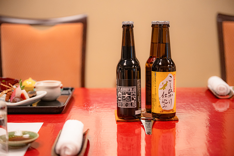 好喝的越光米啤酒、岩室溫泉黑湯啤酒(黑麥啤酒)。