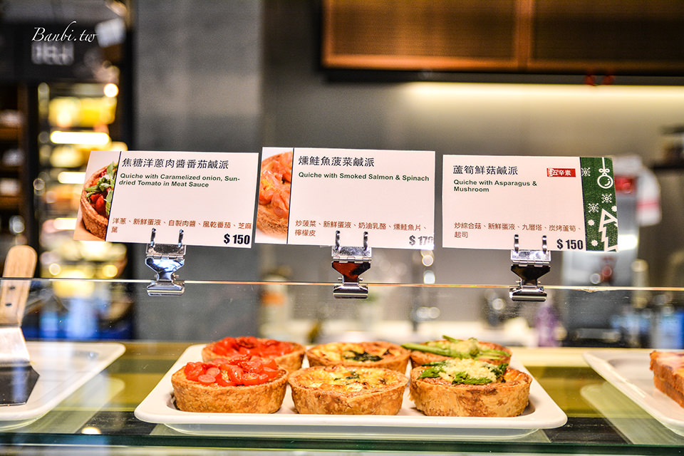 餐檯前有個個當日現作的鹹派或是料理,均有標示清楚名稱、價格以及內容物,可按照喜好挑選喜歡的料理,也可以看黑板上寫的當日主食菜單與其他品項來選擇。