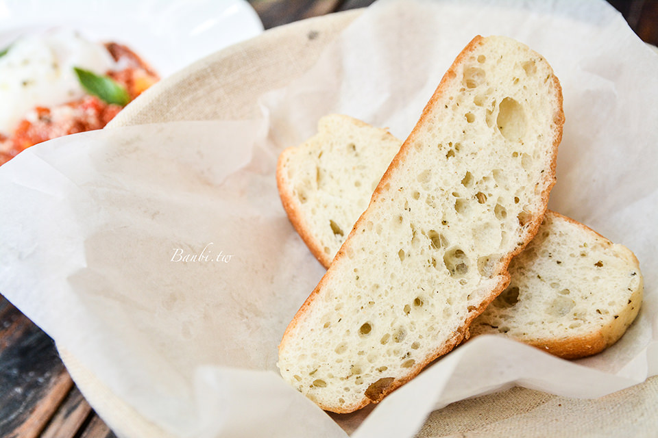 一旁麵包籃內是點主食會附上的麵包,也是使用珠寶盒自製的麵包,而他們家的麵包我一直很喜歡且覺得好吃,這次附的有一款是南瓜核桃,口感柔軟帶南瓜香甜味感。很不錯。