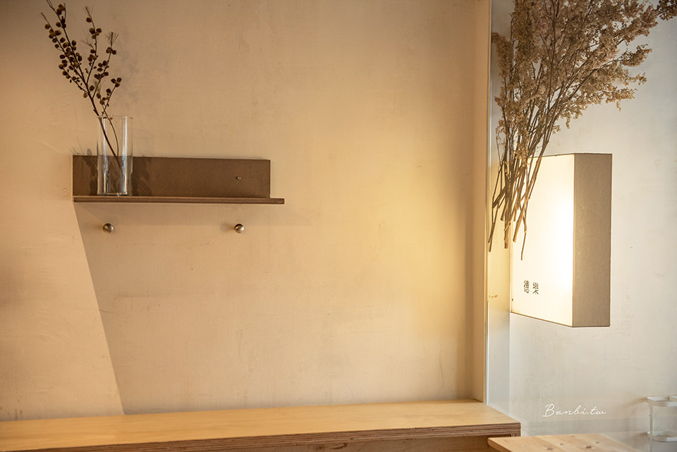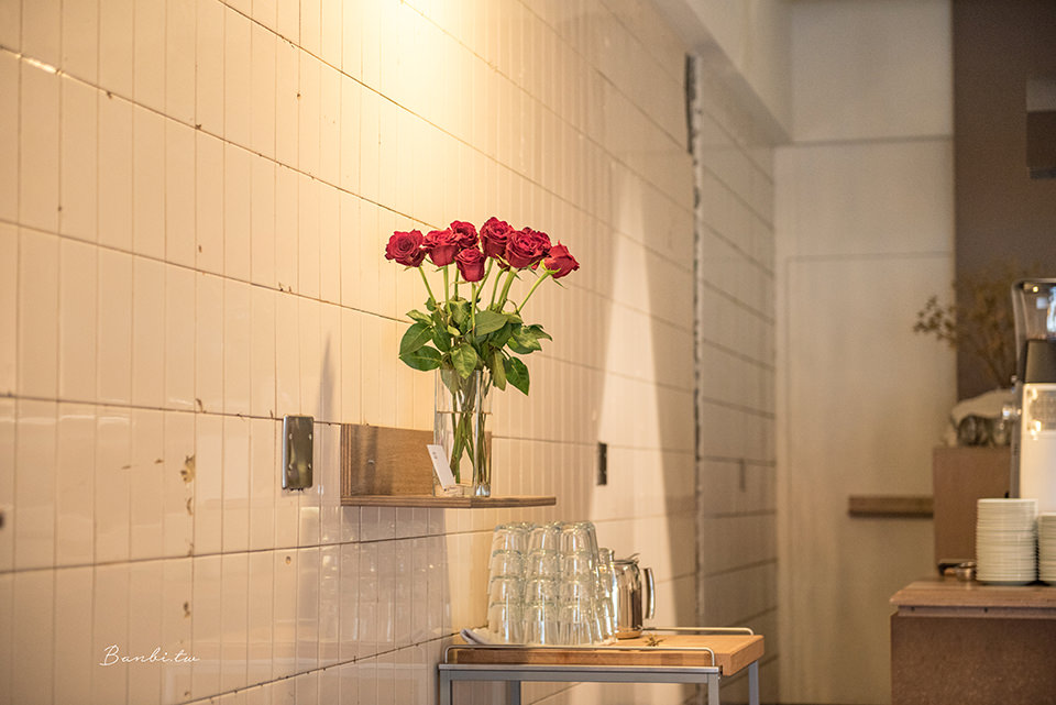 店內空間不大,大多是常以搭配小桌子,還有另一面牆壁上的白瓷磚,風格簡單隨性。