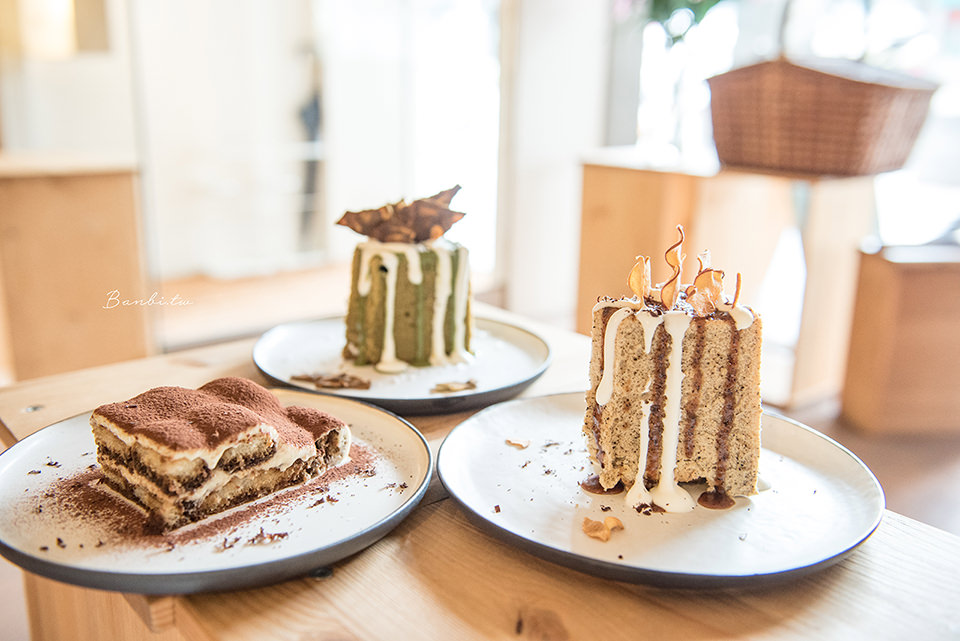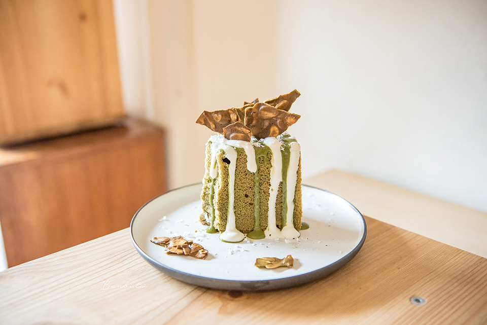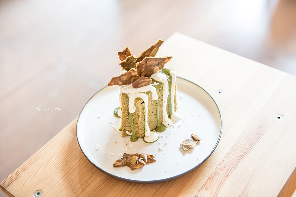 相比之下我個人對於此款抹茶戚風蛋糕倒沒伯爵茶戚風蛋糕與提拉米蘇要來的喜歡,抹茶奶味感重,不過帶了點淡淡茶苦味。最上方刨了起士,搭了酥脆的抹茶杏仁片,是不同於市面的抹茶甜點會呈現的口感。