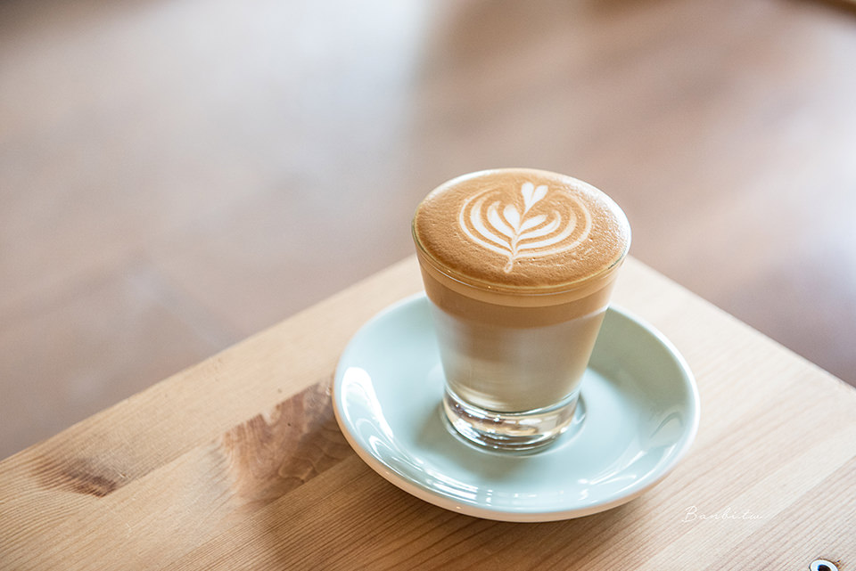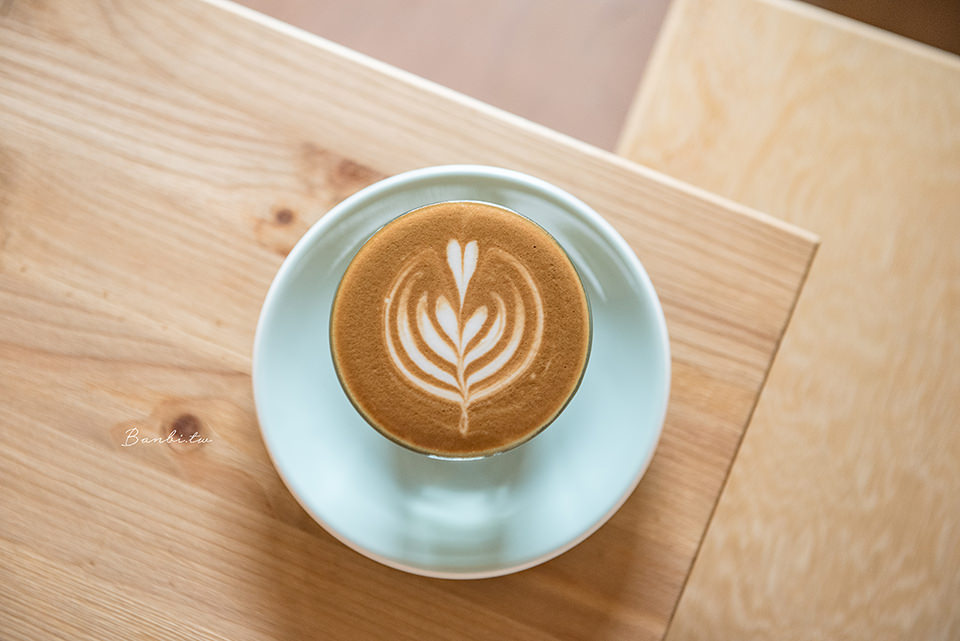 小白Flat white的味道也是帶點濃厚與豐富感,焦苦香、堅果味、甜味,上方的奶泡則不粗糙,呈現綿密口感。