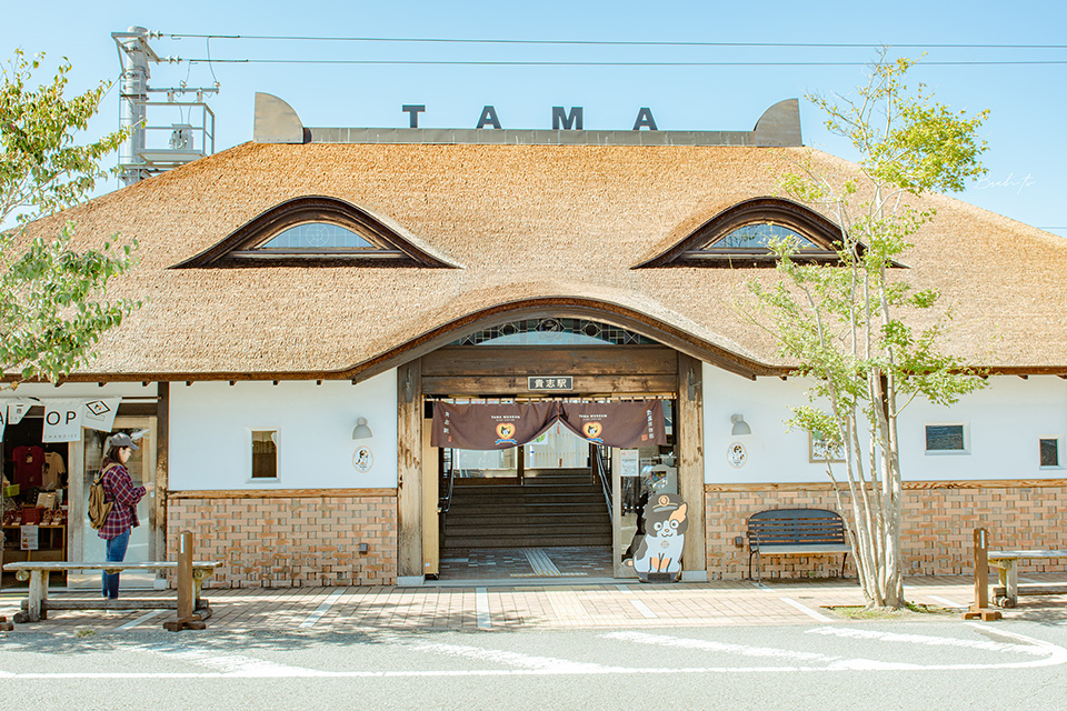 搭了可愛的和歌山電鐵電車來到貴志車站,車站屋頂設計成貓咪的造型,最上方還放了小玉的名字「TAMA」。
