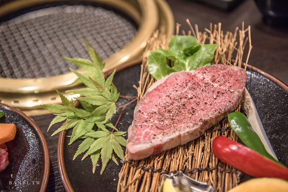米澤牛菲力牛排是米澤牛案山子燒肉餐廳的「定食」菜單中,價格最為高的,份量上也比起前面的來得多。雖然費用高,但是肉厚的牛肉在口感上果真比較過癮,而且軟嫩、油花適中,能吃出肉的甜味。
